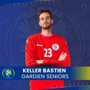 23 BASTIEN KELLER 1. THEO DE MARVILLE2. JULIEN LEDIG3. MATT BOURGEOIS4. VINCENT CAYOTTE5. PAUL BOUGNOT6. NATHAN PIERRU7. MAXIME VIRAUD8. ALEXY LAFFAY9. MATTHIAS RUYER10. FABRICE HUBER11. ELYOTT PIERRET14. JORIS WENSIERSKI15. LOIC ADOLPH23. BASTIEN KELLER78. DORIAN ROGER #23NationalitéFranceL'équipe actuelleROMBAS – S1