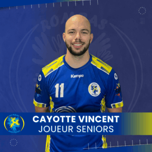 4 VINCENT CAYOTTE 1. THEO DE MARVILLE2. JULIEN LEDIG3. MATT BOURGEOIS4. VINCENT CAYOTTE5. PAUL BOUGNOT6. NATHAN PIERRU7. MAXIME VIRAUD8. ALEXY LAFFAY9. MATTHIAS RUYER10. FABRICE HUBER11. ELYOTT PIERRET14. JORIS WENSIERSKI15. LOIC ADOLPH23. BASTIEN KELLER78. DORIAN ROGER #4NationalitéFranceL'équipe actuelleROMBAS – S1